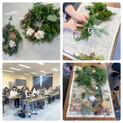 今日はPTA成人教育主催でクリスマスリース講座が開かれました。