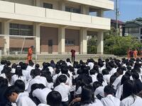 暑い中ですが、生徒たちも校長先生のお話をしっかり聞いていました。