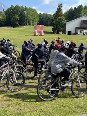 昼食後、午後からは各体験場所でラフティング、マウンテンバイク、レザークラフトを楽しみました。