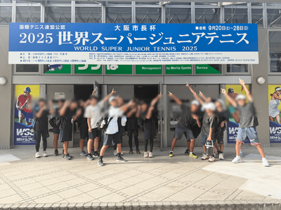 また、先日、部員たちと世界スーパージュニアテニス大会の観戦に行ってきました。テニスの面白さに触れてもらうことも大切なのですが、この日は、時間を守るなどの「誠実さがあるか」、こんなプレーをしたいと思う、どんな風に打っているのか?などの「知識欲があるか」というテーマを設けていました。一人ひとりが考える必要があった観戦となりました。