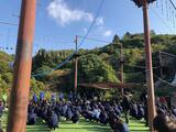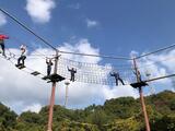 宿泊学習の2日目は、ソラカケルという屋外施設でアクティビティーを楽しみました。柱の間に架かった地上7mのスリル満点のコースに命綱を装着して挑戦したり、クラスごとに団結力を発揮するプログラムにみんなで取り組んだりと、快晴の空の下で楽しい時間を過ごしました。